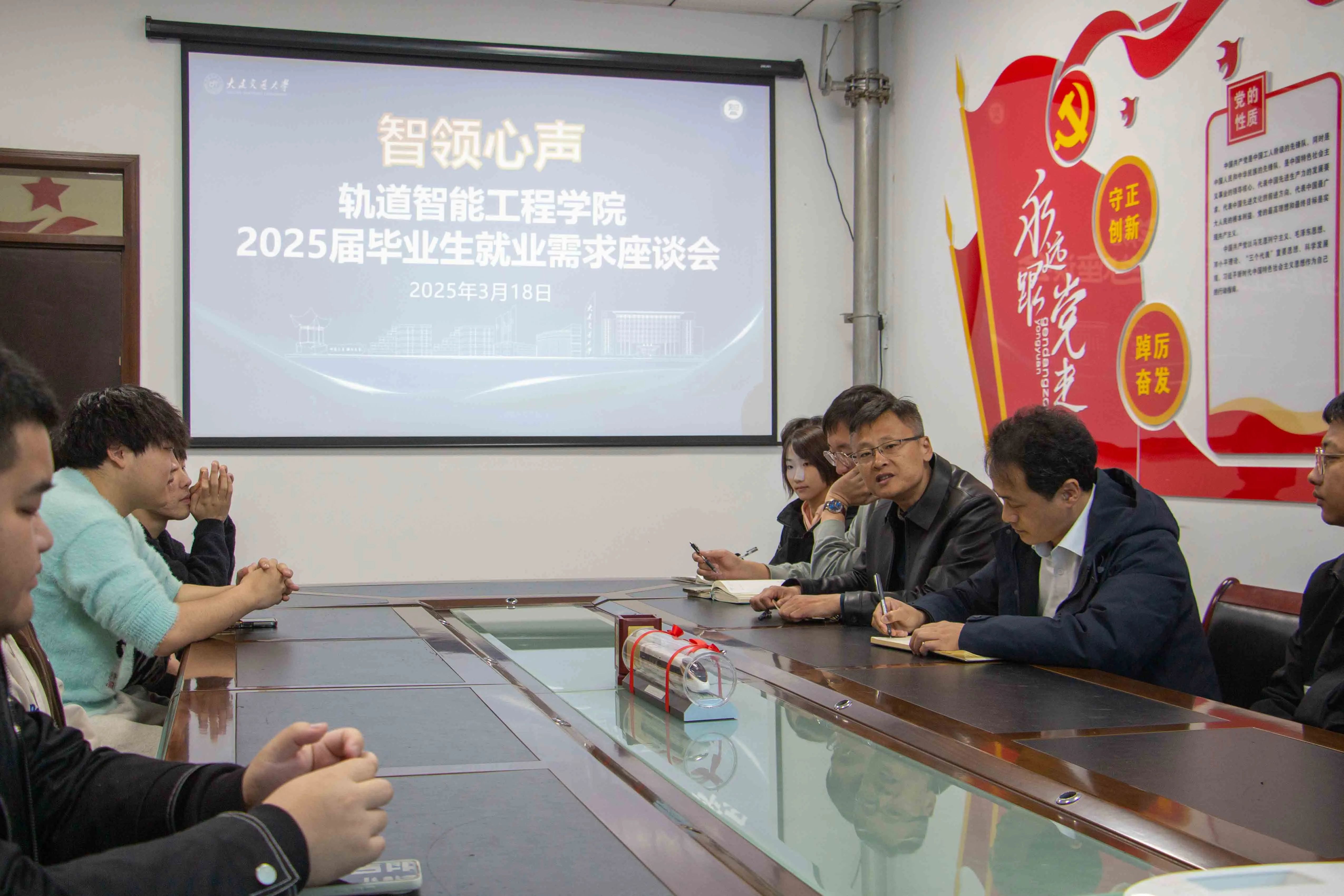 于A419-2会议室召开2025年春季学期本科毕业生就业座谈会,党委书记陈少华、党委副书记邓晗、本科生毕业班辅导员及各班级学生代表参加了座谈,会议由党委副书记邓晗主持。